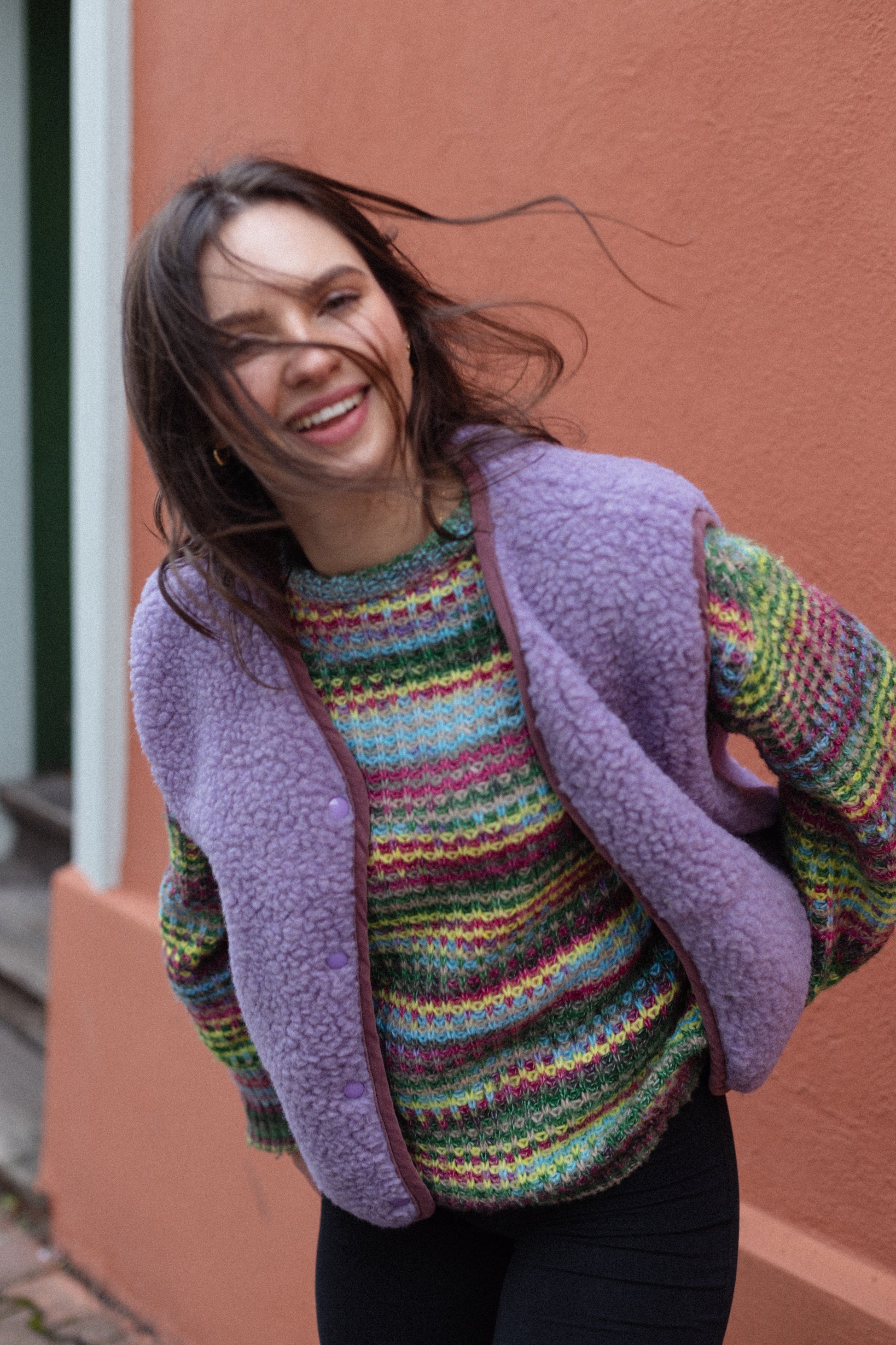 Available in a beautiful, deep colour range of blue and pink as well as lilac and natural beige; this vest adds a bold touch to any outfit while maintaining a classic unisex design - ideal for effortless layering.