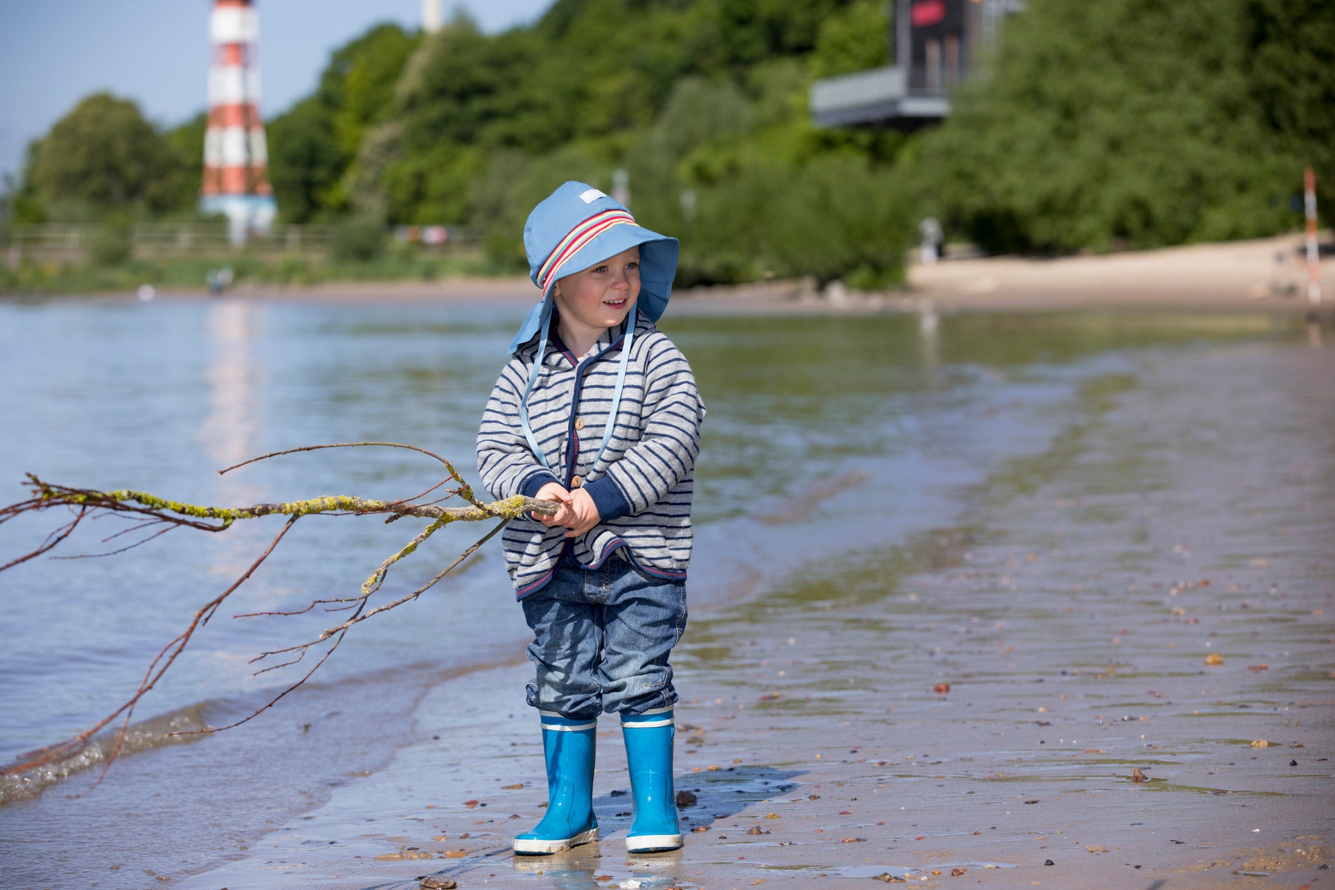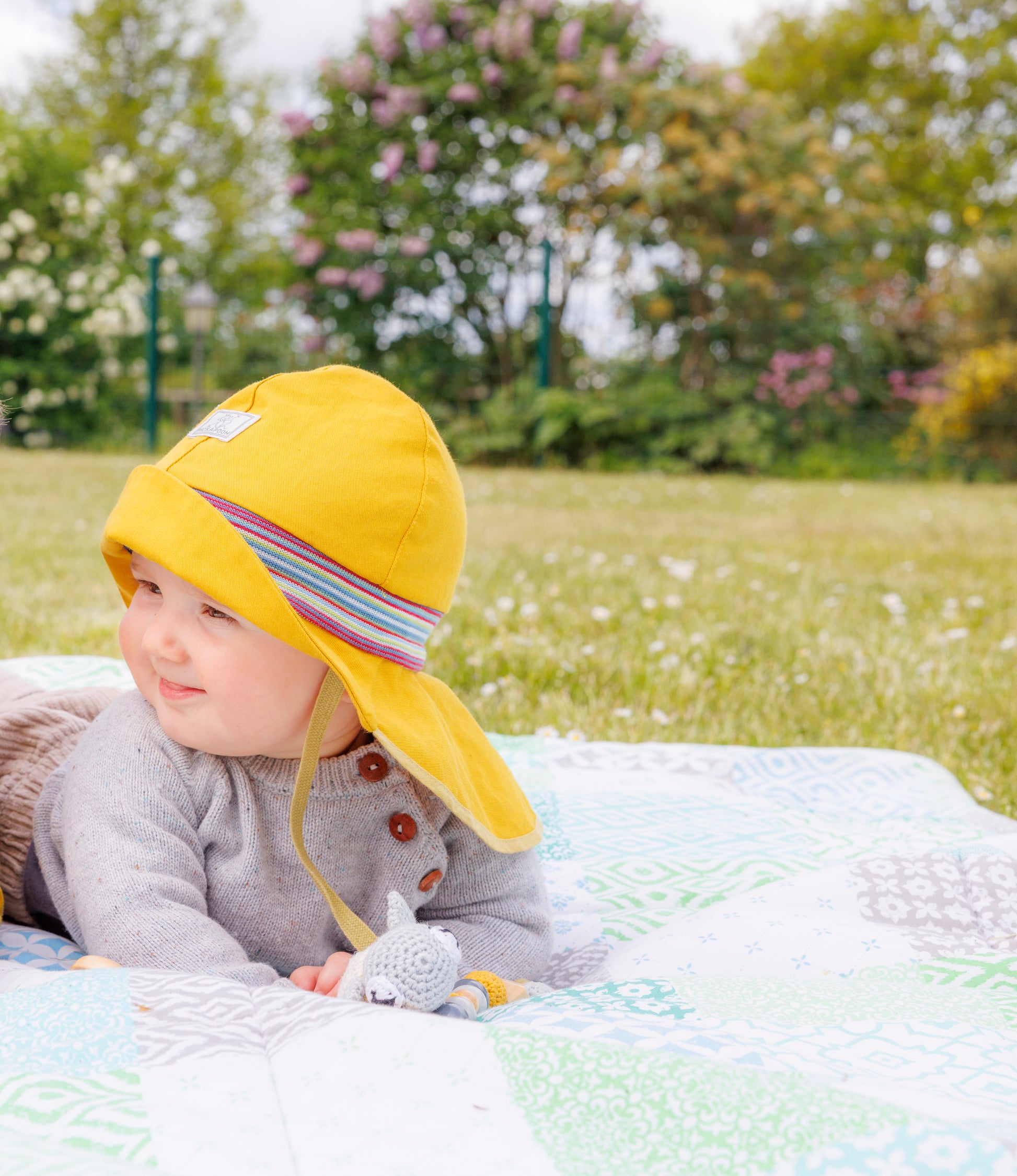 This sun hat is an absolute favourite for all ages. It's made from soft, 100% organic cotton and gives the perfect protection on sunny days. It fits comfortably thanks to the stretchy knit band that helps keep it snug on little heads, while the wide brim offers great protection for the face, neck and ears. Handy ties at the sides let you secure it under the chin, so it stays put even during play. The breathable, skin-friendly fabric keeps things cool and comfy, and with UV protection factor 80 (tested to UV Standard 801), it's a great choice for safe fun in the sun.